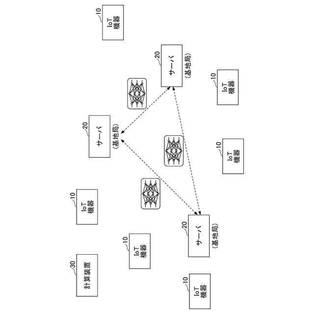 本発明は、IoT(Internet of Things)機器から生成されるデータを複数のサーバで分散的に収集してそれらのサーバで機械学習モデルを協調的に学習する技術に関連するものである。