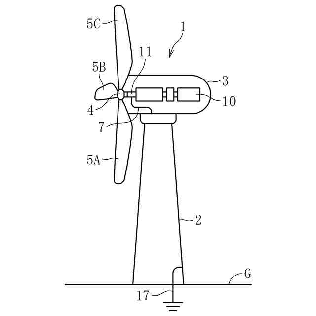 風力発電設備は、ブレードの落雷対策として、ブレード先端部に金属製の受雷部(レセプタ)が設置されるとともに、夫々のブレードに引き下げ導線(ダウンコンダクタ)が設けられて、これらレセプタ及びダウンコンダクタを介して雷撃電流を大地に流すことができる。