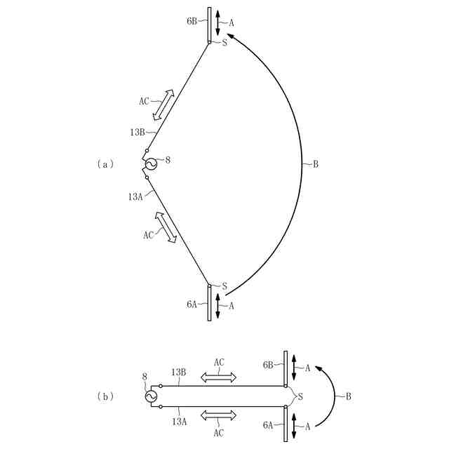 交流信号を印加する送信器と第1の導線とを第1の単線ケーブルにて接続するとともに、前記送信器と第2の導線とを第2の単線ケーブルにて接続し、前記第1の単線ケーブルと前記第2の単線ケーブルとが前記送信器から異なる方向に延びることを特徴とする請求項1に記載の断線検出方法。
