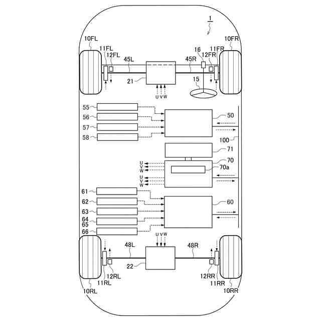 近年、電動モータを駆動力源とし、排ガスを排出しない電気自動車(BEV:Battery Electric Vehicle)が実用化されている。例えば、特許文献1には、前輪がフロントモータにより駆動され、後輪がリヤモータにより駆動される電動式の全輪駆動車(全輪駆動の電気自動車)が開示されている。