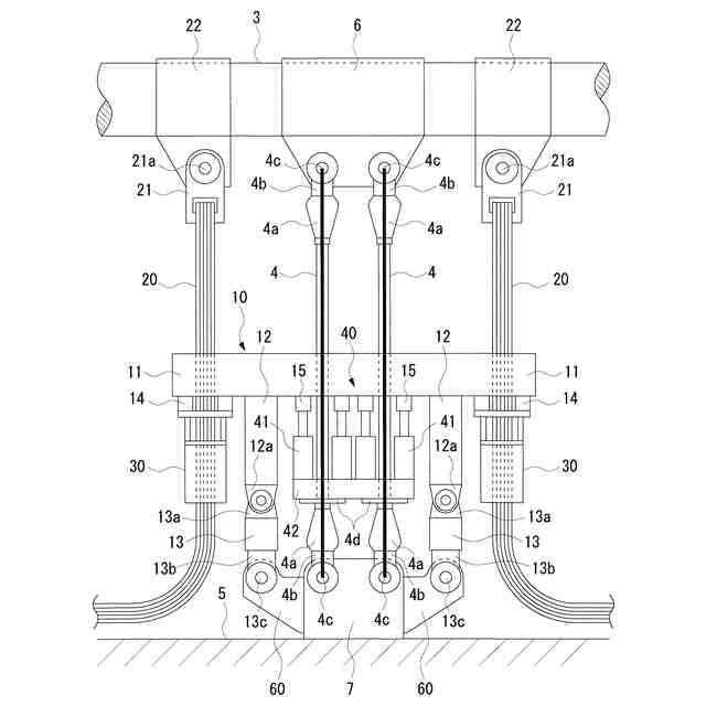 このような吊橋は完成から長期間が経過しているものも多く、各部材が腐食等の老朽化を生じている可能性がある。特に、ハンガーケーブルは、メインケーブルよりも小径の鋼材からなるため、車両走行時の振動や風圧等による荷重が繰り返し加わることにより、劣化が進行して耐久性が低下している場合があり、このような老朽化したハンガーケーブルは新たなハンガーケーブルに取り替える必要がある。