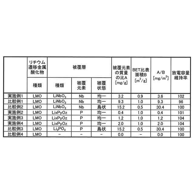 【解決手段】本発明の一側面に係る蓄電素子用の正極活物質は、スピネル型結晶構造を有するリチウム遷移金属酸化物と、上記リチウム遷移金属酸化物を均一に被覆する被覆層とを有し、上記被覆層がニオブ元素又はリン元素を含み、上記リチウム遷移金属酸化物及び上記被覆層の合計質量[g]に対する上記ニオブ元素及び上記リン元素の合計質量[mg]の比をA[mg/g]とし、上記リチウム遷移金属酸化物及び上記被覆層からなる部分のBET比表面積をB[m