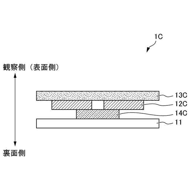 第4の開示は、請求項1に記載の印刷物(1C)において、前記光輝層(13C)は前記第1印刷層(14C)及び前記第2印刷層(12C)よりも観察側に配置されていること、を特徴とする印刷物(1C)である。
