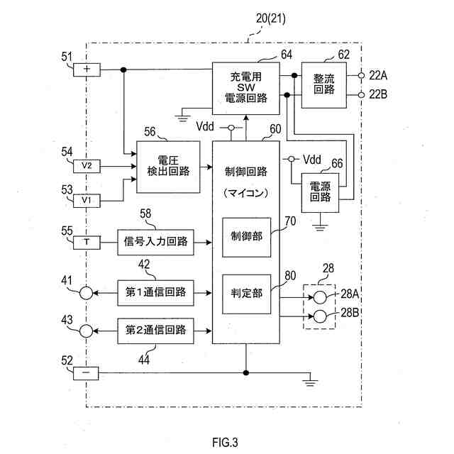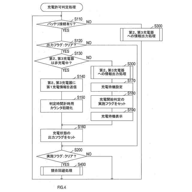 詳しくは、判定部は、電池パックが筐体に装着されて充電回路から電池パックへの充電が可能になると、通信部が第2充電器から充電動作状態を表す第2充電情報を受信しているか否かを判定する。そして、判定部は、通信部が第2充電情報を受信しているときには、制御部に対し充電制御の実行を待機させ、通信部が第2充電情報を受信していないときに、制御部に対し充電制御の実行を許可する。