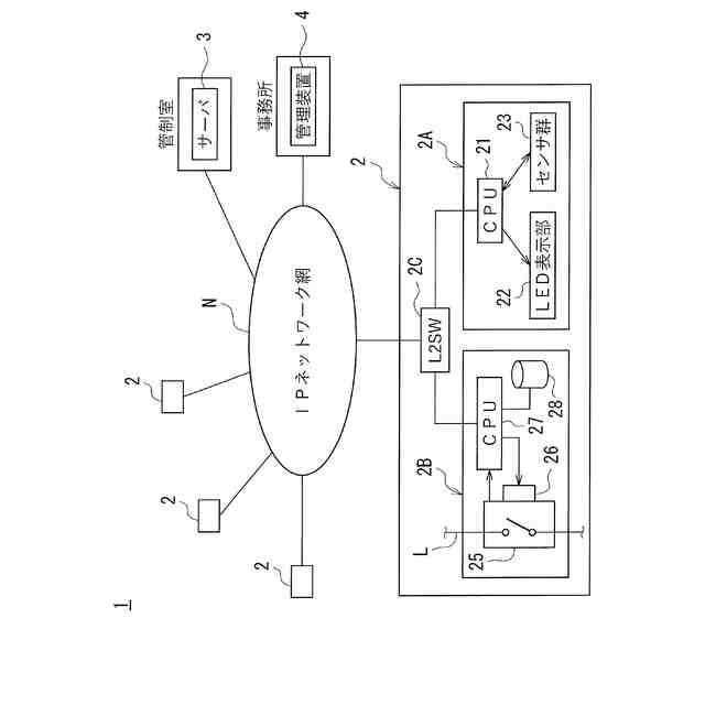 【解決手段】電光掲示設備2の回路遮断ユニット2Bに備えられた回路遮断装置25がトリップした場合、当該トリップの発生原因を判別し、当該トリップの発生原因の情報をIPネットワーク網Nを介して管理装置4に提供する。これにより、システム管理者はトリップの発生原因を認識することができ、トリップの発生原因に応じた適切な対策を講じることにより、回路遮断装置25のトリップが繰り返されてしまうことを効果的に抑制することができる。また、設備保守作業者が現地まで出向いてトリップの発生原因の判別を行うといった必要はなくなるため、設備保守作業者の負担の軽減およびトリップが発生してから当該トリップの発生原因を判別するまでに要する時間の短縮化を図ることができる。