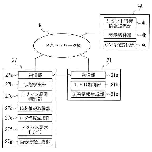 この特定事項により、回路遮断装置がトリップした場合、そのトリップの発生原因がトリップ原因判別部によって判別される。そして、このトリップの発生原因の情報はIPネットワーク網を介して管理装置に提供される。これにより、システム管理者はトリップの発生原因を認識することができ、トリップの発生原因に応じた適切な対策を講じることにより(不必要な対策を講じてしまうことなく)、回路遮断装置のトリップが繰り返されてしまうことを効果的に抑制することができる。また、トリップの発生原因の情報が管理装置に提供されることから、設備保守作業者が現地まで出向いてトリップの発生原因の判別を行うといった必要はなくなる。このため、設備保守作業者の負担の軽減、および、トリップが発生してから当該トリップの発生原因を判別するまでに要する時間の短縮化を図ることができる。以上のことから、回路遮断装置にトリップが発生してから短期間のうちに適切で且つ計画的な対策を講じることが可能となる。