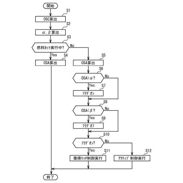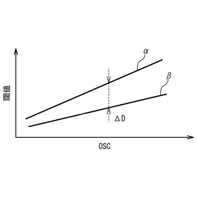 OSCに応じた閾値α及びβを規定したマップの例示図である。