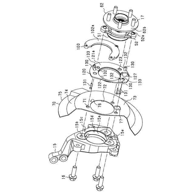 前記座繰り部の底部(386a)のうち前記凹部挿通孔の周縁部は、前記ハブボルトの頭部の座面(387a)になっており、