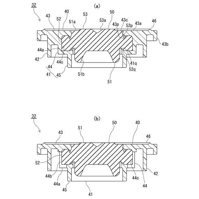 例えば、栓ホルダ及び栓体は、インサート成形によって分離不能に一体形成されている。「分離不能に一体形成」とは、無理に分離しようとすると栓ホルダ及び栓体の少なくとも一方が材破される程度に、栓ホルダと栓体とが互いに強固に密着されていることを言う。その結果、通気性が無い状態となっている。