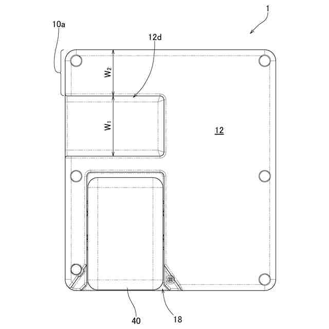 前記バッテリーが、前記筐体に対し、平面視において筐体の四つの角部のいずれか一つに寄った配置として配設されることを