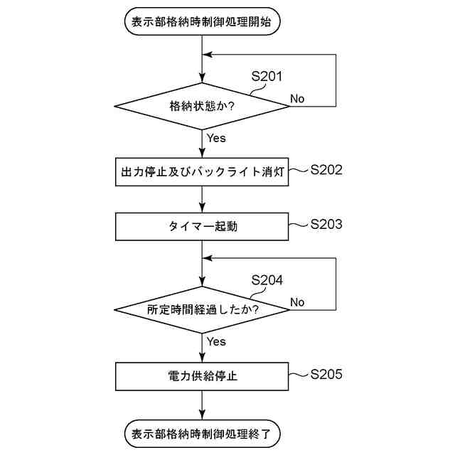 本発明の実施の形態に係る画像形成装置が実行する表示部格納時制御処理のフロー図である。