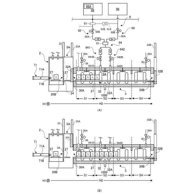 前記原料ガス供給装置によって前記浸炭室に供給されるガスの総流量に対して、前記送気ポンプによって前記浸炭室から導出される雰囲気の導出流量が、10%以下となることを特徴とする、