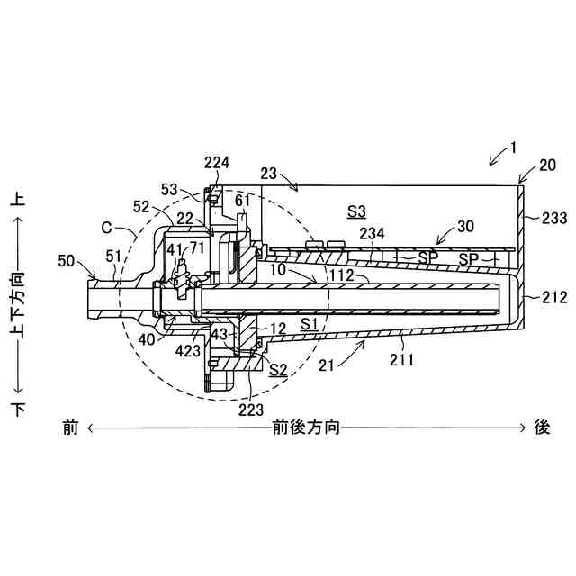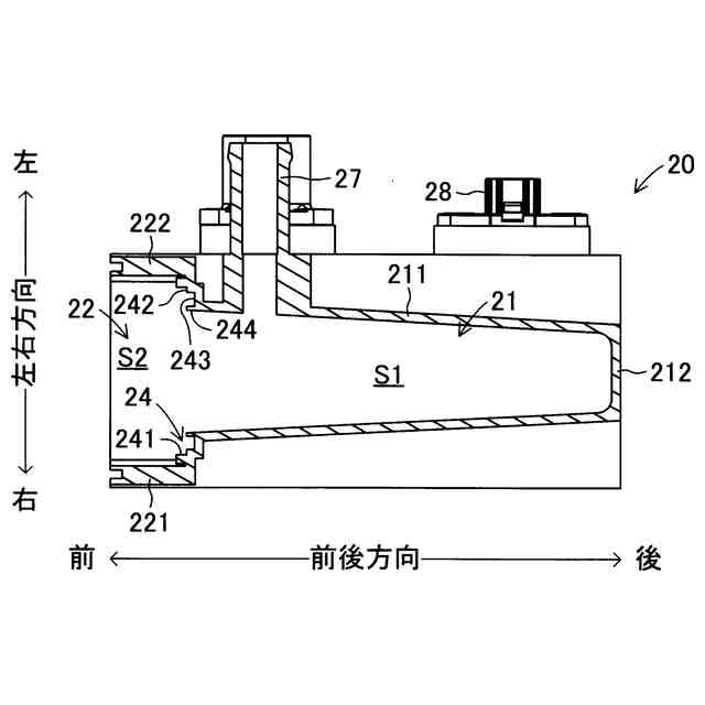 前記フランジ部が前記段差壁部に当接することにより、前記第一空間と前記第二空間が区画される、