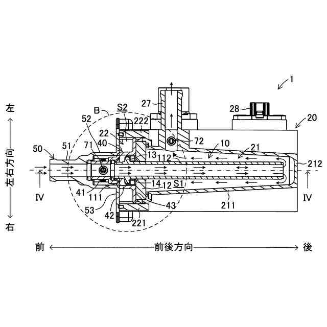 前記ハウジングには、前記第一空間から媒体を流出させるための出口通路部が形成されており、