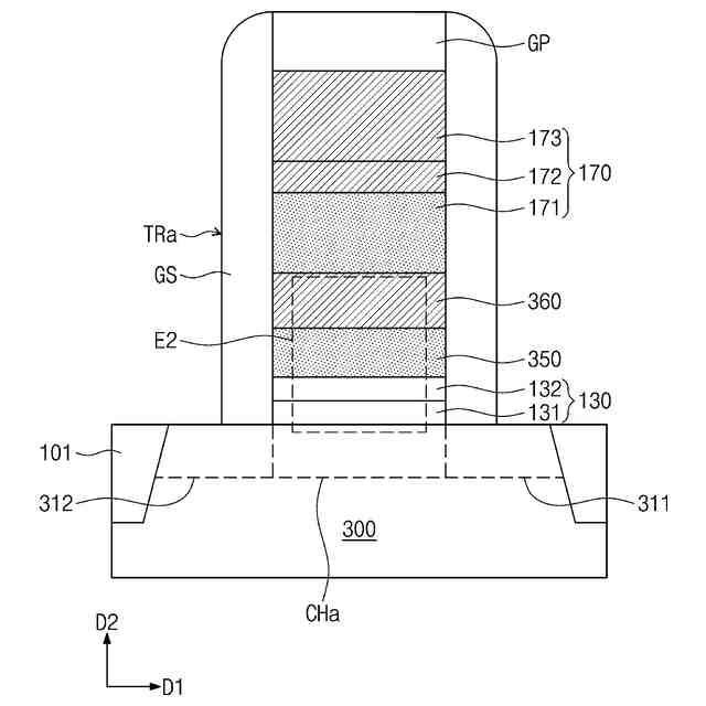 上記目的を達成するためになされた本発明のさらに他の態様による半導体装置は、チャンネル領域と、前記チャンネル領域上のゲート絶縁膜と、前記ゲート絶縁膜上の高誘電膜と、前記高誘電膜から離隔された第1金属パターンと、前記第1金属パターンと前記高誘電膜との間のダイポール構造体と、前記第1金属パターン上の導電構造体と、を含み、前記導電構造体はポリシリコンを含み、前記第1金属パターンは金属化合物を含み、前記ダイポール構造体は第1ダイポール元素を含む第1ダイポール膜及び第2ダイポール元素を含む第2ダイポール膜を含み、前記第1ダイポール元素の最大酸化数は前記第2ダイポール元素の最大酸化数とは異なることを特徴とする。