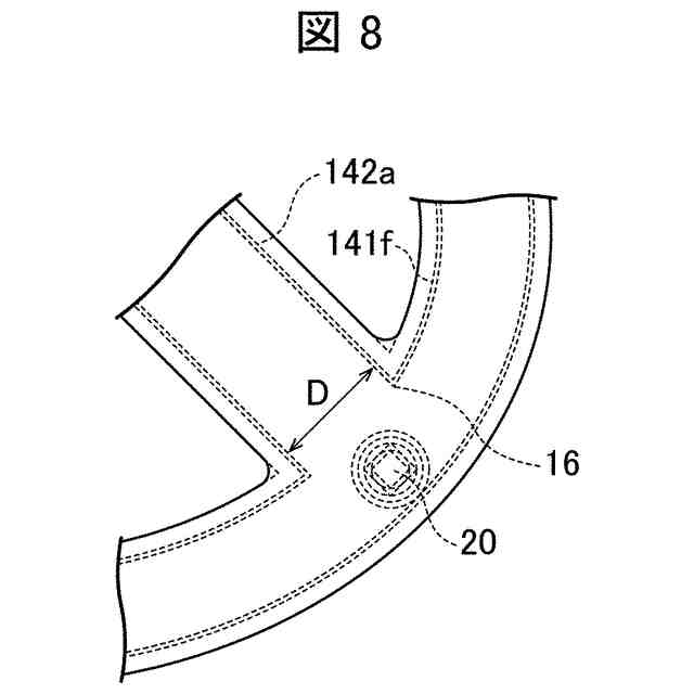 前記外縁導光路の輪郭のうち、前記分岐部において外側となる外側輪郭部と、
