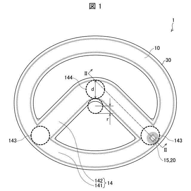 前記意匠の外縁部に沿う外縁導光路と、前記外縁導光路から内側へ向かう内側導光路とを有し、
