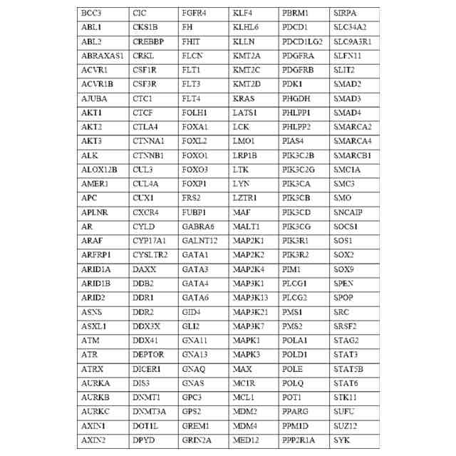例えば、ある証拠は、各構成要素が作用可能なゲノム変化に合致している併用療法の使用が、個々のがんを治療する最大の可能性を保持することを示唆している。この時点までに、一つ以上の治療レジメンを用いて治療されたがん患者の遡及的研究により、ゲノム変化のより高い割合に合致した治療法を受けた患者が、安定した疾患のより高い頻度(例えば、再発までのより長い時間)、治療失敗までのより長い時間、及びより優れた全生存率を経験したことが明らかになった。Wheeler et al., 2016, Cancer Res., 76:3690-701。したがって、各がん患者のゲノム、エピゲノム、及び/又はトランスクリプトームの包括的評価は、より微調整された併用療法、新規の薬物の適応症外使用、及び/又は組織非依存免疫療法を促進することによって、プレシジョンオンコロジーによって提供される利益を最大限化するべきである。例えば、Schwaederle et al., 2015, J Clin Oncol., 33(32):3817-25; Schwaederle et al., 2016, JAMA Oncol., 2(11):1452-59; and Wheler et al., 2016, Cancer Res., 76(13):3690-701を参照されたい。更に、がんゲノムの包括的な次世代シーケンシング分析の使用は、臨床試験登録のためのより良好なアクセス及びより大規模な患者プールを促進する。Coyne et al., 2017, Curr. Probl. Cancer, 41(3):182-93;およびMarkman, Oncology, 31(3):158, 168。