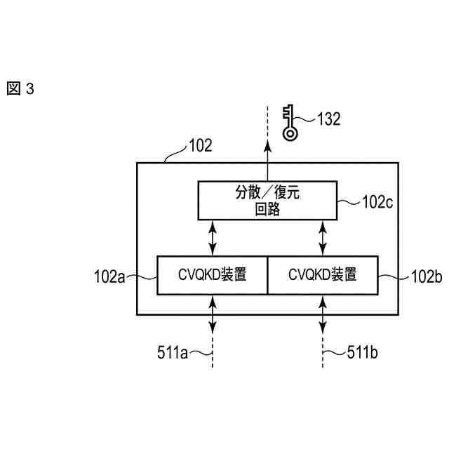 さらに前記第1、第2のCVQKD装置は、前記暗号鍵の分散と、分散された暗号鍵の復元を行うために、暗号鍵の分散/復元回路に接続されており、