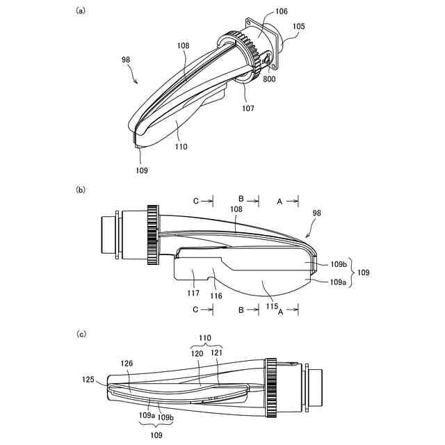 上記した様相は、前記先端ノズル部における吸引経路は、吸引時姿勢において、前記先端ノズル部の上側部分が下側部分よりも断面積が大きい、ことが好ましい。