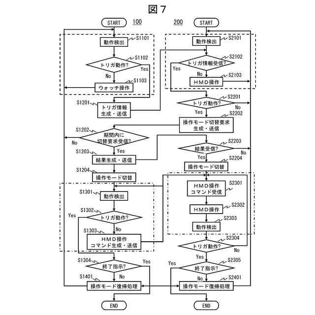この場合、スマートウォッチで検出したジェスチャをスマートウォッチに対する操作指示とするモードと、HMDに対する操作指示とするモードとの間での切り替えが必要である。しかしながら、手は常に動かしているものであり、また、筋電情報は高精度化に限度がある。このため、筋電情報だけでモードを切り替えようとすると誤認識誤作動が多くなる。一方、スマートウォッチの画面タッチや龍頭プッシュなどの動作をモードの切り替えに用いると誤認識や誤作動は減る。しかしながら、反対側の手を使う必要があり、せっかく筋電情報によって片手で操作可能としたのにその利点が十分生かせていない。