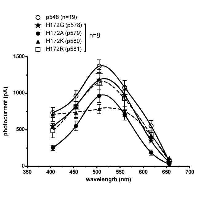 配列番号6に示すアミノ酸配列からなるポリペプチドの172番目のHisが他のアミノ酸に置換されてなるポリペプチドで構成される請求項1記載の改変チャネルロドプシン。