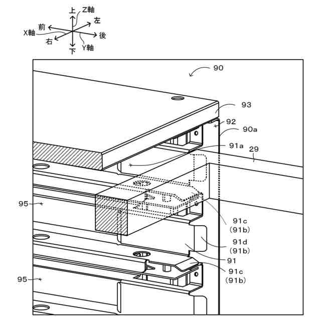 収容ラック90が枠29を引き入れる様子を示した説明図。