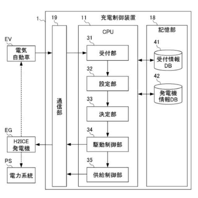 【解決手段】充電制御装置は、水素内燃機関の動力で駆動される複数の発電機の出力および組合せのうち少なくとも一方を決定する決定手段と、決定された出力または組合せで、前記発電機を駆動させる駆動制御手段と、前記発電機によって発電された電力を充電対象のバッテリーに供給させる供給制御手段と、を有する。