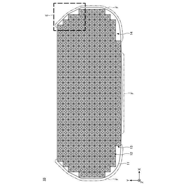 第1実施形態に係る面状光源における各光源の配置を例示する平面模式図である。