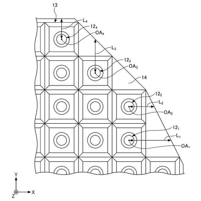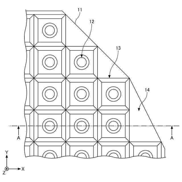 第1実施形態に係る面状光源における光拡散板を例示する平面模式図である。