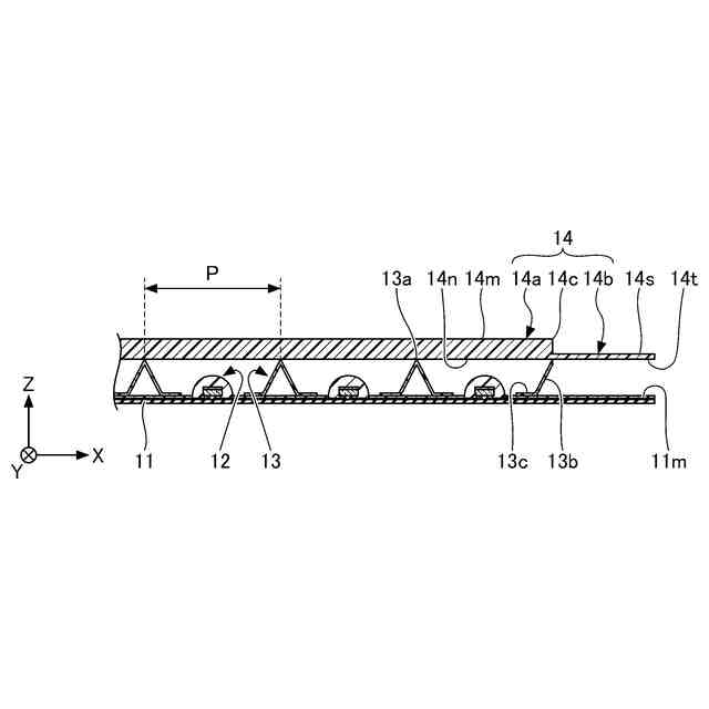 本開示の一実施形態によれば、平面形状が異形形状である面状光源において、周縁に発生する輝度ムラを抑制できる。