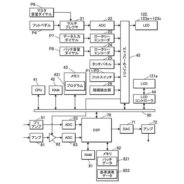 電子楽器では、ユーザの演奏操作に対して多様な音色や音量で音響出力することができる。これらの音色、音量や演奏効果(エフェクト)の設定は、個々にスイッチなどにより操作されるだけでなく、これらの組み合わせを予め設定したパッチなどと呼ばれる音設定を選択して演奏に適用することでも行われる。ユーザは、ライブ会場、演奏曲目や曲内の場面などの組み合わせに係るシーンごとにパッチを切り替えることで、容易に電子楽器の演奏の出力を所望の音色の間で容易かつ速やかに変更することができる。