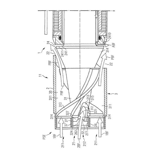 前記駆動セクション(4)は、前記ロータ(41)と前記ステータ(40)との間の軸方向ギャップ(401)を通って延在する補助流路によって流体力学的に接続される補助血流入口(23)および補助血流出口(24)と、前記ロータ(41)の駆動セクション端部DSEに配置され、前記回転軸(10)を中心に前記ロータ(41)とともに回転可能な補助インペラ(42)とを更に備え、前記補助インペラ(42)は、前記ポンピングデバイス(11)のポンプセクション端部PSEへと向かう方向に補助流路に沿って前記補助血流入口(23)から前記補助血流出口(24)に補助血流を搬送するように構成された1つ以上の補助インペラ羽根(421)を備え、