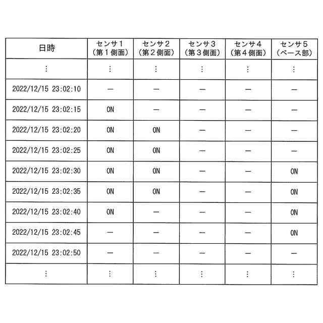 前記複数のセンサの検出状態を記憶するセンサ検出テーブルを記憶した記憶部と、