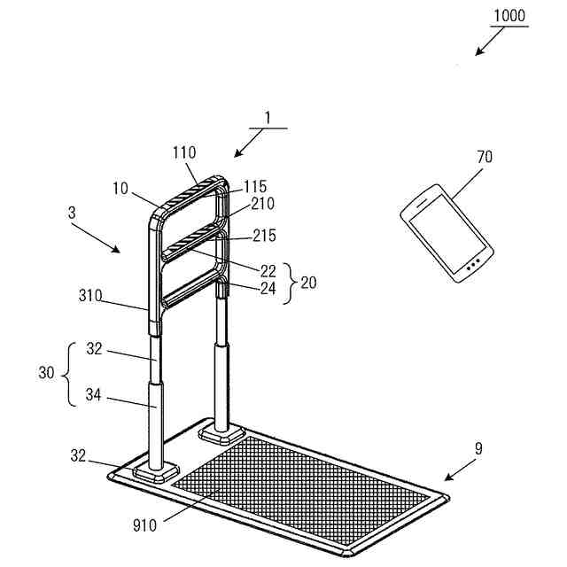 本実施形態における手摺り装置を含むシステム全体を説明する図である。