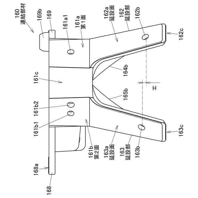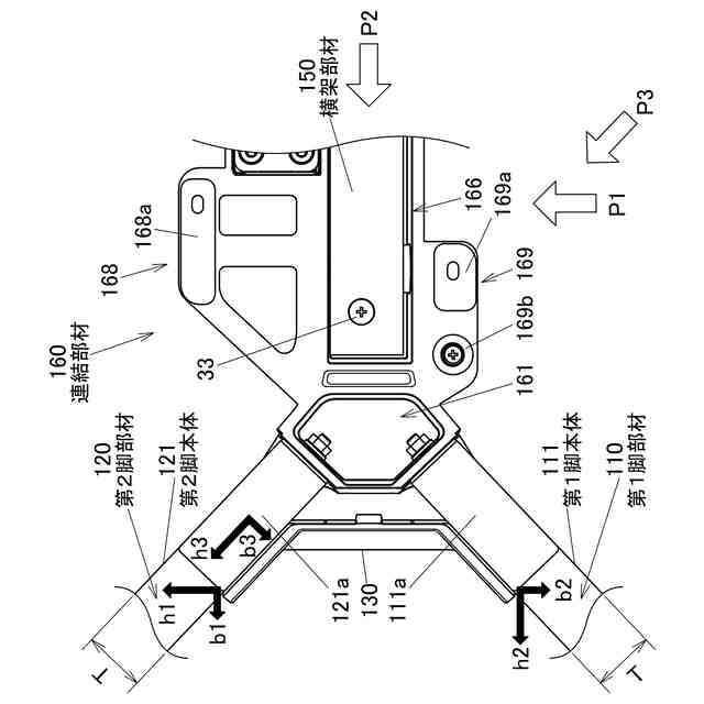 前記連結部材は、前記脚部材を支持する延設部と、前記脚部材を固定する多角形状部の下面と、の間に補強リブを有する、