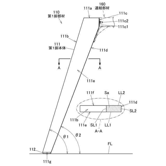前記第1脚部材と前記第2脚部材は、夫々水平方向の断面が長方形状の脚本体を含む、