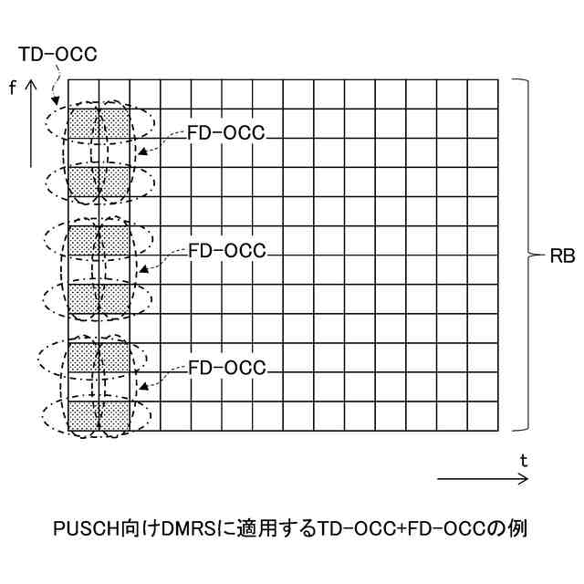 NTNでは、上空の基地局と端末間の距離が非常に大きく、基地局のリソースが限られるため、UL(Uplink)の容量及びスループットの強化が必要である。そこで、OCC(Orthogonal Cover Code)をDFT-s-OFDM(Discrete fourier transform spread Orthogonal Frequency Division Multiplexing)のPUSCH(Physical Uplink Shared Channel)送信に適用する手法が検討されている。
