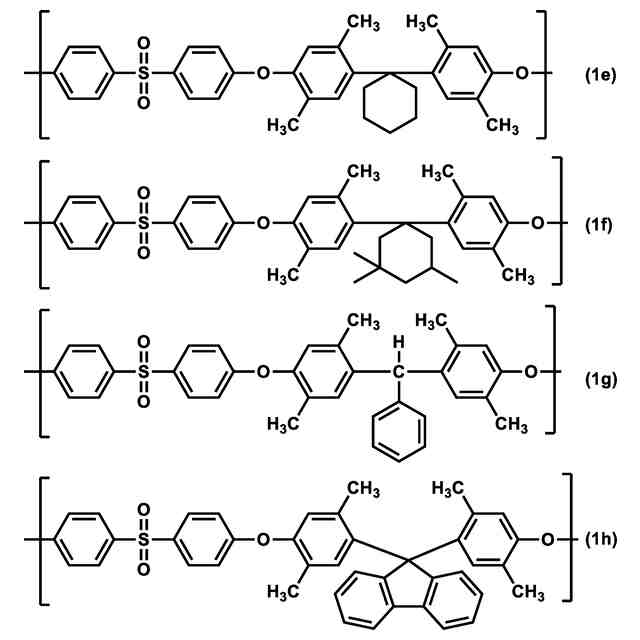 ビスフェノール化合物とジハロゲン化ジフェニルスルホンから得られるPAESにおいて、ヒドロキシ基の二つのオルソ位に炭化水素基を有するビスフェノールである4,4’-メチレンビス(2,6-ジメチルフェノール)と、4,4’-ジクロロジフェニルスルホンから得られるPAESは向上した耐熱性を有することが知られている(特許文献1)。