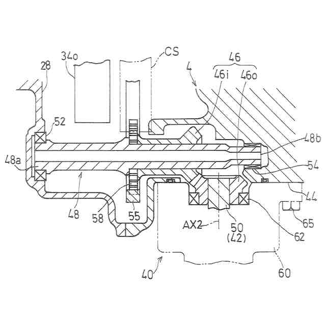 同エンジンのクランクシャフトと出力軸の連結構造を示す縦断面図である。