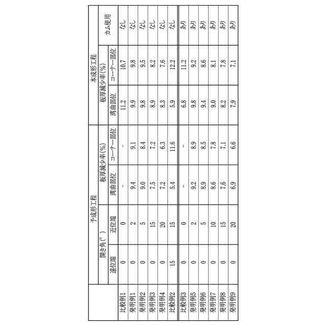 前記目標成形品における外側縦壁部と、前記中間成形品における外側縦壁部とがなす角度を開き角度としたとき、