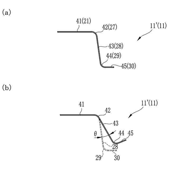 また、外側縦壁部の中間形状は、遠位端から近位端に近づくにつれて、開き角度が次第に大きくなる形状であることが好ましい。このとき、開き角度は、近位端において2~20°であることが好ましい。