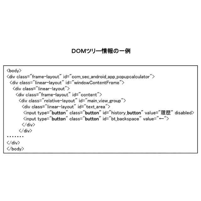 現在、アプリケーションプログラムをテストするためのツールが種々提供されている。大きく分けて、パーソナルコンピュータ(PC)やスマートフォンにインストールされたネイティブアプリ(以下、アプリという)のテストツールと、ウェブサイトのテストツールとがある。アプリ用のテストツールでは、入力要素として表示されたボタン等に対するユーザの操作をもとに、アプリケーションUIの階層構造情報を利用して、テストコードを作成し、テストを実行する。これに対し、ウェブサイト用のテストツールでは、ウェブページのHTML要素のDOM(Document Object Model)の階層構造情報を利用して、テストコードを作成し、テストを実行する。