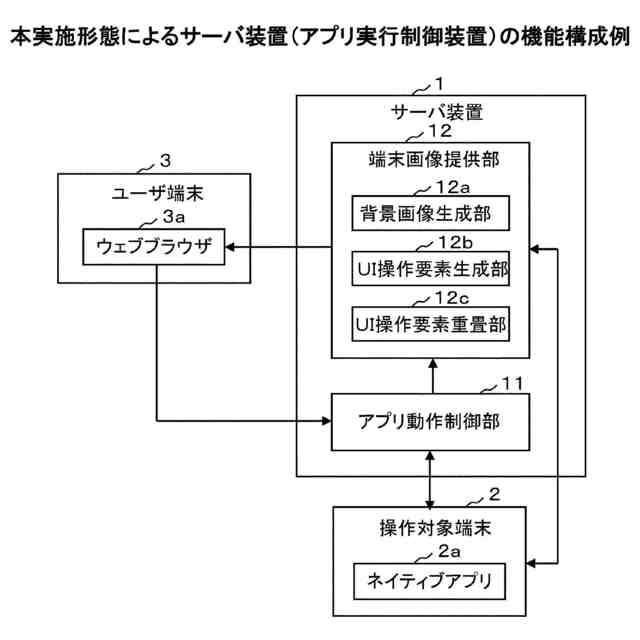 上記UI操作要素に対して行われるユーザ操作のイベント情報を上記ユーザ端末から取得し、当該取得したイベント情報に基づいて、上記操作対象端末にインストールされているネイティブアプリを動作させるアプリ動作制御部とを備え、