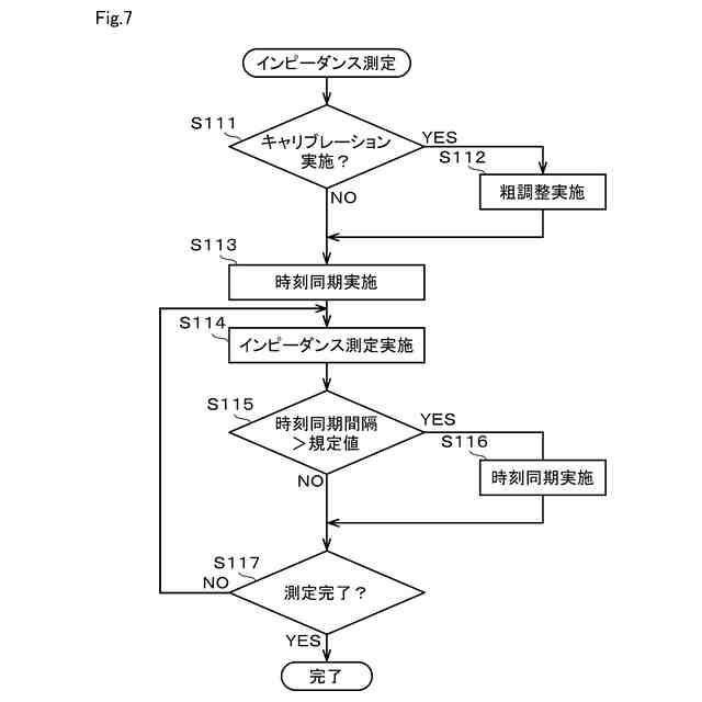 システム本体は、起動時又はインピーダンスの測定前や、前回の前記同期コマンドの送信時から一定時間以上の間隔が空いた場合に、各デバイスの前記第2クロックの周波数を特定の範囲内に収まるようにキャリブレーションを実施するように構成されており、