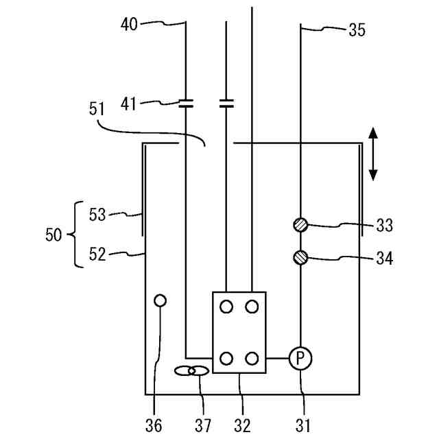 前記第2熱交換器に接続され、水が封入された水配管と、
