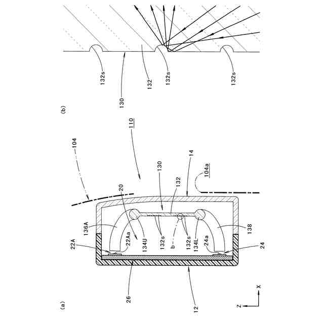 上記「車両用灯具」は、光源からの出射光を、導光体を介して灯具前方へ向けて照射するように構成されていれば、灯具の種類については特に限定されるものではない。