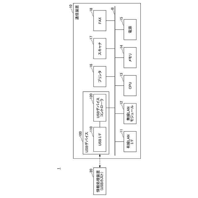 USBインタフェースを有するUSBデバイスを備え、前記USBインタフェースを介して他の装置と通信可能な通信装置が、