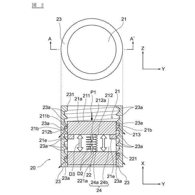 図2は、本実施形態に係る面圧付与機構の一例を示す上面図及び部分断面図である。
