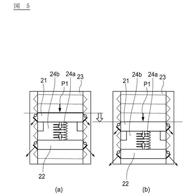 前記油圧室の油圧が大きいほど、前記油圧によって、回転状態の他方の支持部が、前記静止状態の一方の支持部から離れるように前記積層方向に移動し、